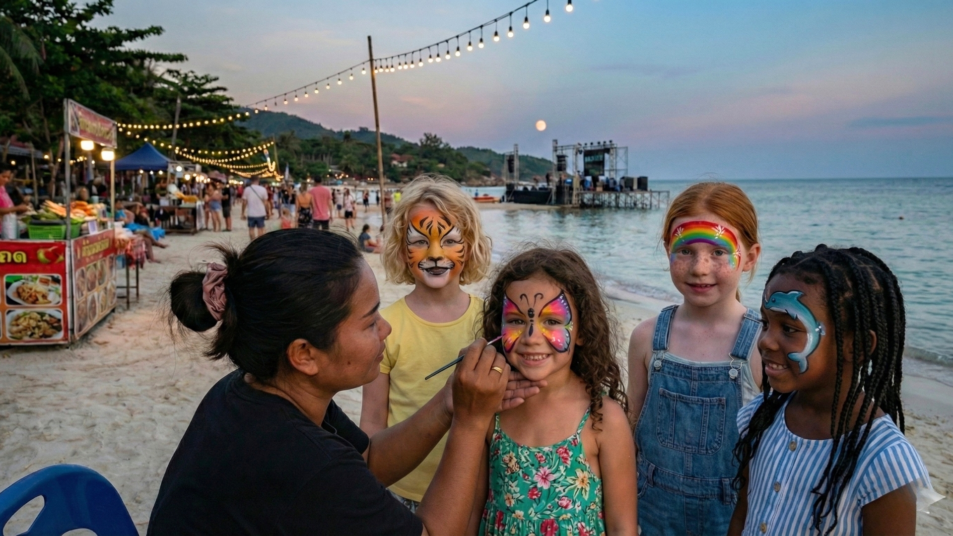 מסיבת הפול מון בקופנגן היא הרבה יותר מסתם חגיגה לילית, היא פסטיבל של צבעים, חושים ואנרגיה מתפרצת תחת כיפת השמיים המוארת. מדובר באירוע אייקוני שמושך אליו עשרות אלפי אנשים מכל העולם, והקסם האמיתי שלו טמון ביכולת שלו להציע משהו מיוחד לכל סוג של מטייל. עבור משפחות, המסיבה יכולה להיות חוויה ויזואלית מרהיבה ומלאה בקסם אם יודעים מתי להגיע. בשעות הערב המוקדמות, כשהחוף רק מתחיל להתמלא, האווירה נעימה ומזמינה מאוד עבור הורים וילדים. הקטנטנים נהנים לעבור בין עמדות הציור ולהתקשט בצבעים זרחניים שזוהרים בחושך, ולצפות במופעי האש המדהימים שמוארים על קו המים. זוהי הזדמנות עבור הילדים לראות עולם צבעוני ומרגש בסביבה בטוחה יחסית, ולחוות את האנרגיה הבינלאומית המיוחדת של תאילנד בצורה בלתי אמצעית. זוגות ימצאו במסיבת הפול מון שילוב נדיר בין רומנטיקה פראית לבין התרגשות משותפת. אין הרבה רגעים שמשתווים להליכה יד ביד על החול הלבן כשהירח המלא משתקף במי הים הצלולים, וברקע נשמעת מוזיקה סוחפת מכל עבר. האווירה המשוחררת מאפשרת לזוגות להתנתק מהעולם החיצון, לרקוד יחד אל תוך הלילה ולייצר זיכרונות של חופש מוחלט בתוך תפאורה טבעית עוצרת נשימה. זהו מקום שבו האנרגיה הזוגית פוגשת את הקצב של האי, ויוצרת חיבור חזק ומלא בשמחה. עבור קבוצות חברים, מסיבת הפול מון היא זירת הגיבוש האולטימטיבית. עם אינספור במות המציעות סגנונות מוזיקה שונים, מהאוס וטראנס ועד להיטים עכשוויים, כל אחד מהחברים יכול למצוא את המקום שלו בתוך החגיגה הגדולה. הקבוצה יכולה לעבור יחד בין המוקדים השונים, ליהנות מהאווירה החברתית התוססת ולהרגיש חלק ממשהו גדול ועוצמתי. האנרגיה המשותפת של אלפי אנשים שרוקדים יחד תחת אור הירח יוצרת תחושת אחדות וכיף שאי אפשר למצוא.